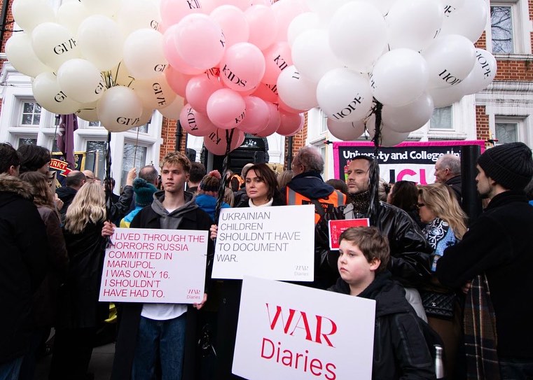 War Diaries - це 14 особистих історій дітей та підлітків, які стали свідками війни й російської окупації в Україні і задокументували її в щоденниках, малюнках, артефактах. Виставка покликана розповісти унікальні історії та пролити світло на глибоку травму, яку проживає молоде покоління України. Унікальна експозиція дає можливість українським дітям бути почутими провідними лідерами цивілізованого світу, адже вона вже побувала в Берліні, Амстердамі, Нью Йорку, Вашингтоні, Страсбурзі. Фрагменти щоденників дітей були зачитані з трибуни Генасамблеї ООН